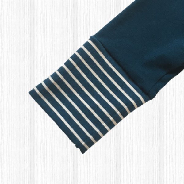 Der elastische Bio-Jersey und die flexible Ziernaht machen den Halsausschnitt dehnbar und trotzdem formbeständig. Dadurch kommt die weberling-Kindermode in allen Größen ohne Verschlüsse an den Schultern aus. Durch den langen Schnitt lässt sie sich über einen langen Zeitraum tragen und die doppellagigen Mitwachsärmel lassen sich durch Umkrempeln optimal an die Armlänge deines Kindes anpassen.