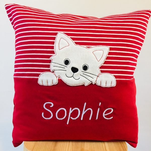 “Lena” kannst du mit einem Namen individualisieren lassen. In diesem Fall ist das Kissen dann oben gemustert und unten einfarbig, damit sich der Name besser abhebt.