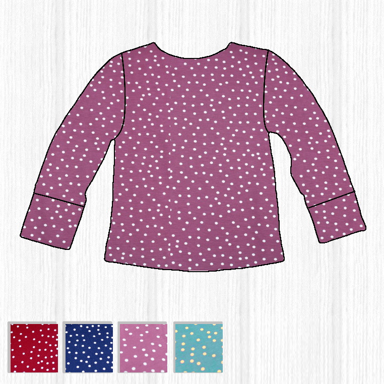 “Juli” ist wie aus einem Guss: in allen Teilen gepunktet! So ist sie schlicht, aber auch mit Motiv besonders schön. „Juli“ ist aus Bio-Baumwolljersey gefertigt und normal bis schmal geschnitten.