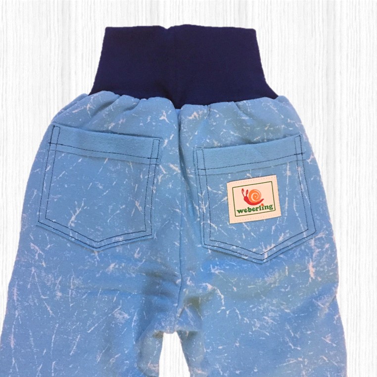 Die Größe 56/62 verfügt lediglich über zwei Gesäßtaschen. Auf die vorderen Seitentaschen und auf die Kniebesätze habe ich hier bewusst verzichtet, um die Hose weich und flexibel zu halten.